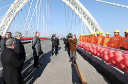 В то же время строительство этого моста говорит о том, что все намеченные нами в свое время задачи претворяются в жизнь. Для улучшения дорожно-транспортной системы Баку строятся мосты, путепроводы, дороги, и данный процесс принял очень широкий размах. В Баку уже построено более 10 новых дорожных узлов, и этот процесс продолжается. Все сооруженные мосты и дорожные узлы отвечают самым высоким стандартам.