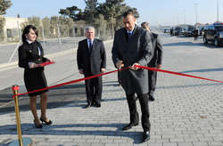 Президент Ильхам Алиев разрезал ленту в знак открытия.