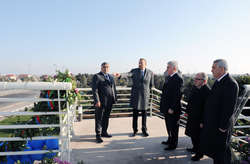 Сначала глава государства принял участие в открытии наземного пешеходного перехода на 4,4 километре дороги "Круг "Аэропорт" - Загульба" в Хазарском районе столицы, построенного в месте большого скопления транспорта и пассажиров.