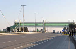 Отмечалось, что навесной мост выполняет также роль пешеходного перехода. Прежде интенсивное движение транспорта по автомобильной дороге Международный аэропорт Гейдар Алиев - поселок Загульба создавало препятствия для безопасного движения переходов. Наличие на этом мосту перехода для пешеходов уже устранило данную угрозу. Здесь в обоих направлениях дороги сооружены лестницы для пешеходов, на мосту, по обеим сторонам построены пешеходные дорожки шириной 4 метра. Этот узел играет важную роль в беспрепятственном регулировании движения транспортных средств из поселка Бина в город Баку и Мардакан, а также в обратном направлении.