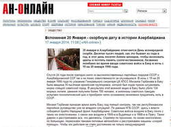 В российском издании "Аргументы недели" опубликована статья "Вспоминая 20 Января - скорбную дату в истории Азербайджана".