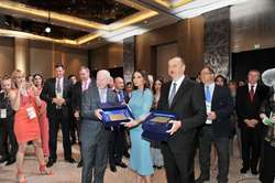 Господин Президент, хочу преподнести Вам и первой леди памятный подарок по случаю этих исторических Европейских игр. Считаю, что он отражает настолько знаменательный момент, что Вы в будущем должны будете передать его в музей. С Вашего позволения, господин Президент, первый подарок я хочу преподнести Вам".