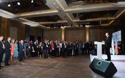 Очень рад находиться сегодня вечером здесь. Господин Президент, благодарю Вас за организацию этого приема. Прежде всего, поздравляю Вас с завоеванными медалями и успехом азербайджанской команды. Браво!
