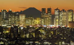 Гора Фудзи в сумерках - один из символов будущей Олимпиады.