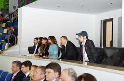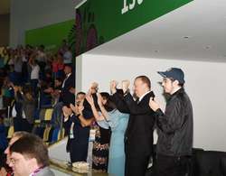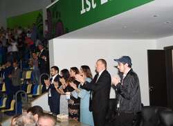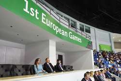 Президент Азербайджанской Республики Ильхам Алиев, его супруга, председатель Организационного комитета Европейских игр "Баку-2015" Мехрибан Алиева и члены их семьи наблюдали за соревнованиями.
