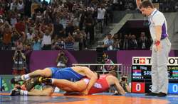 Один из ведущих членов нашей команды по греко-римской борьбе Эльвин Мурсалиев выступил в соревнованиях в весовой категории 75 килограммов. Одержав на первом этапе победу над словаком Ричардом Риго со счетом 8:0, наш борец вышел в одну восьмую финала. На этом этапе наш соотечественник также вышел победителем из напряженной борьбы с румыном Ионелем Пускасу.