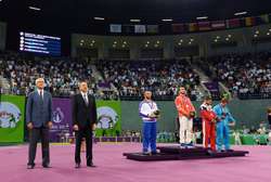 Затем состоялась церемония награждения в соревнованиях по греко-римской борьбе в весовой категории 75 килограммов.
