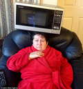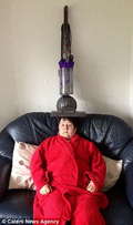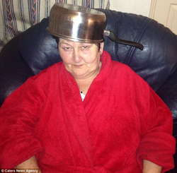 На каждой фотографии Джеми изображает свою бабушку с различными домашними предметами на голове - вплоть до гладильной доски и микроволновки. У женщины удивительная способность удерживать тяжелые предметы на голове. Выражение лица и ее красный халат никогда не меняются. Буквально за несколько дней Twitter-страница "Вещи на моей бабушке", которую открыл внук женщины, набрала более 40000 поклонников.