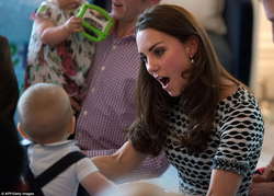 Все взоры были направлены на 8-месячного Джорджа. Маленький наследник английского престола с удовольствием играл с предложенными ему игрушками, а также дергал свою маму за волосы. Компанию принцу составили 10 малышей, которые были рождены в Новой Зеландии в тот же день, что и Джордж. Кейт Миддлтон в изысканном черно-белом платье внимательно следила за сыном и выполняла все его капризы. А принц Уильям с гордостью любовался ими со стороны.