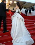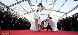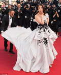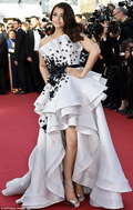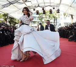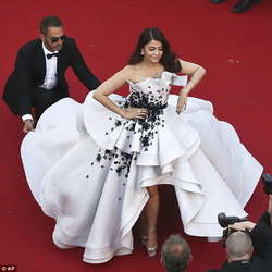 Как сообщает Day.Az со ссылкой на Daily Mail, 41-летняя индийская красавица появилась в огромном платье от Ralph & Russo. Платье было чрезмерно тяжелым, так что Айшвария испытывала трудности, шагая по красной дорожке. Рядом с ней стояли помощники, которые то и дело расправляли шлейф платья и помогали ей ходить и подниматься по лестницам.