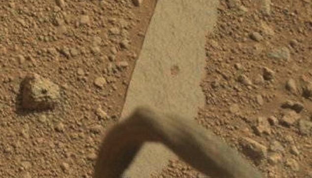 Увы, конечность оказалась всего лишь электрическим проводом: помечен стрелкой на ч/б снимке, сделанном "Любопытством" ранее.