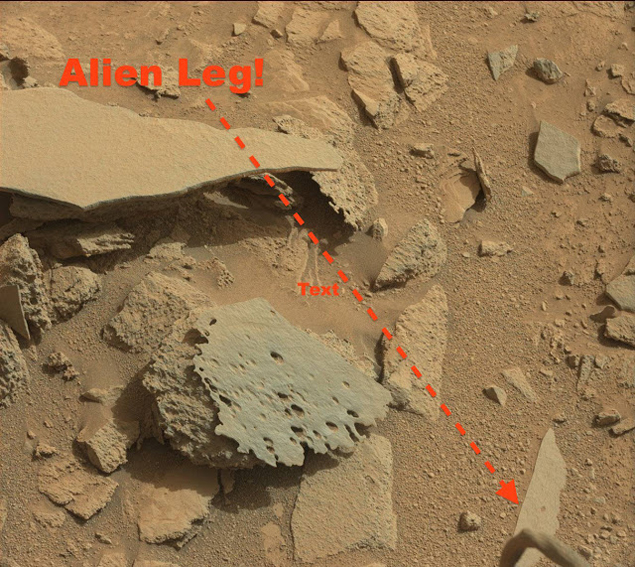 Внимание к снимку в свое время привлекли энтузиасты, предположив, что в кадр попала часть любопытного марсианина, обследующего земную технику. По форме и цвету эта часть удивительно походила на одну из конечностей шестиконечного существа - представителя марсианских аборигенов, продемонстрированных в фильме "Джон Картер".