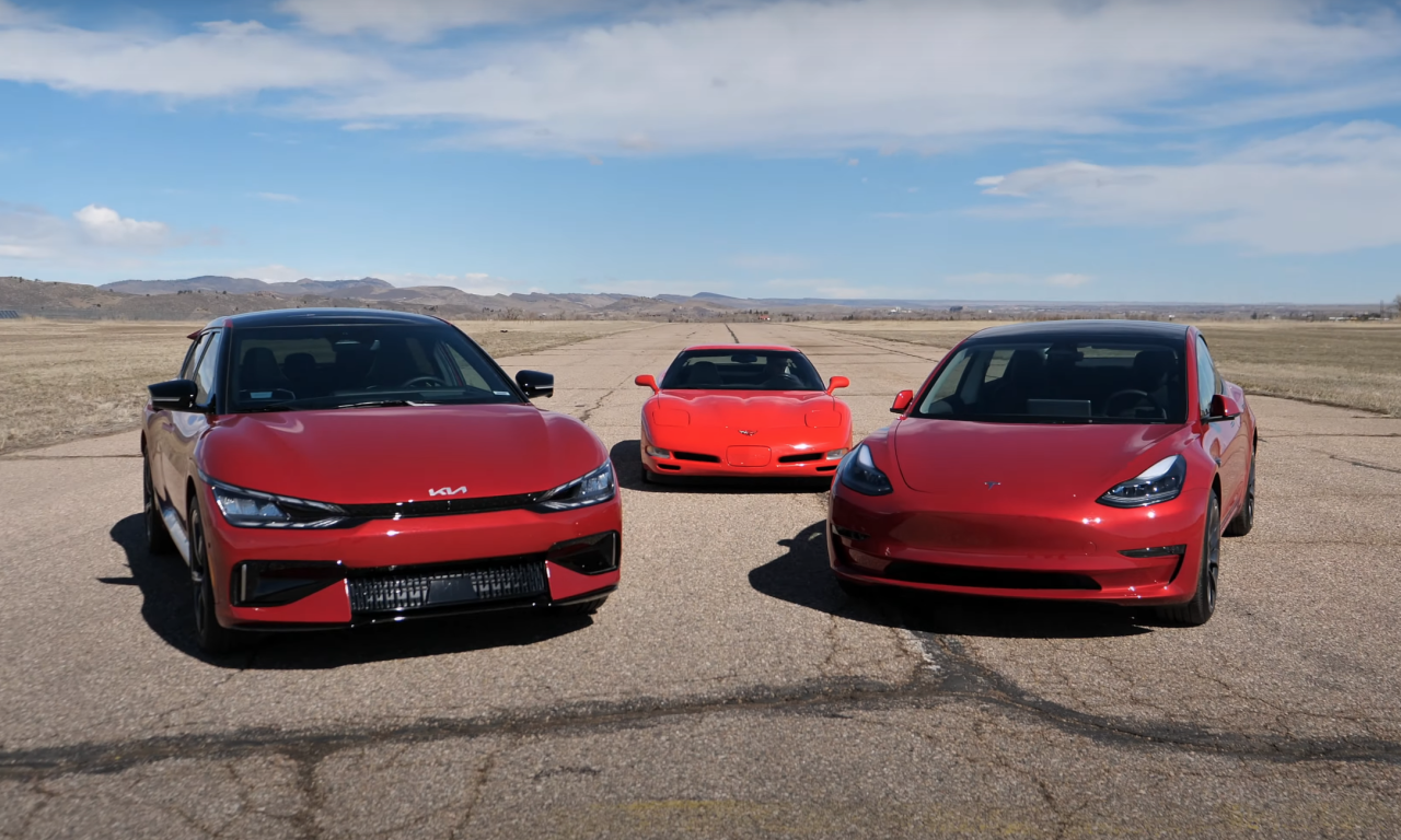 Tesla Model 3 и Kia EV6 GT сравнили в гонке по прямой с Corvette - ВИДЕО