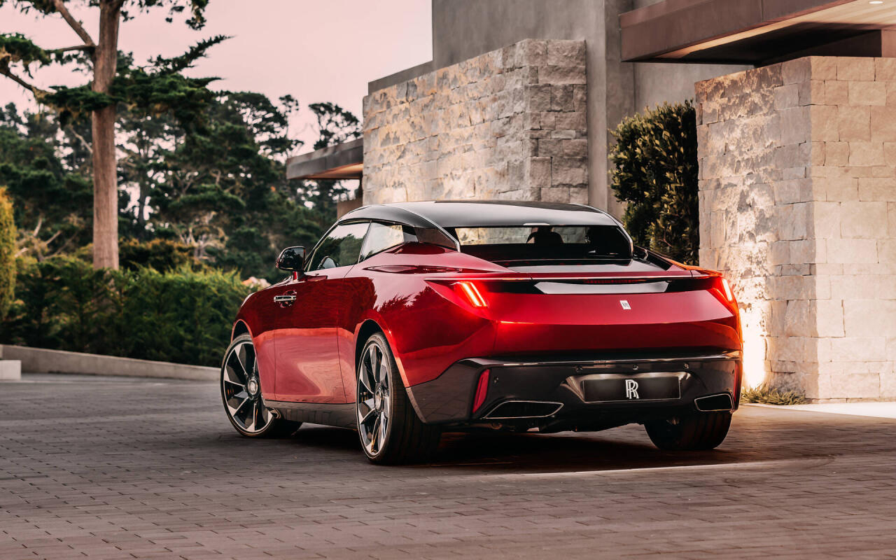 Задняя часть этого произведения искусства смотрится необычно, благодаря вертикальным фарам, упирающимися в спойлер, который продолжает крышку багажника. Rolls-Royce ранее ничего подобного не производил.