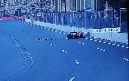 Milli.Az xəbər verir ki, yarış başlar-başlamaz "Campos Vexatec Racing"dən komandasının italiyalı pilotu Luka Giottonun idarə etdiyi bolid Azneft dairəsindəki döngədə idarəetməni itirərək əvvəlcə yolun sağındakı təhlükəsizlik səddinə, sonra da "Four Seasons" otelinin qarşısındakı divara çırpılıb.