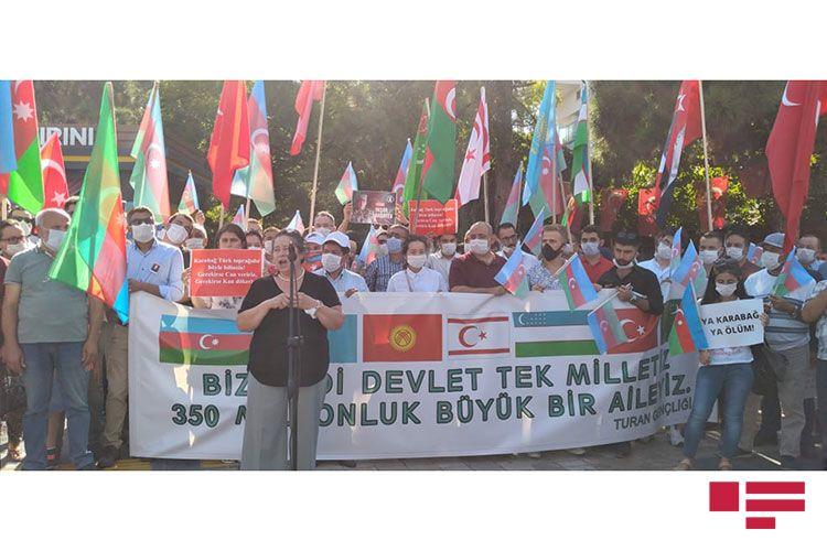 APA-nın Türkiyə bürosunun xəbərinə görə, Kayserinin mərkəzindəki Cümhuriyyət meydanında 40-a yaxın təşkilatın iştirakı ilə keçirilən aksiyaya Türkiyə, Azərbaycan, Qazaxıstan, Qırğız, Özbəkistan, Türkmənistan və Şimali Kipr vətəndaşları qatılıb.