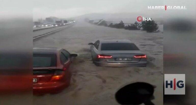 Day.Az Türkiyə mediasına istinadən məlumat verir ki, güclü sel suları Ankara-Eskişehir avtomobil yolunda hərəkəti iflic edib.