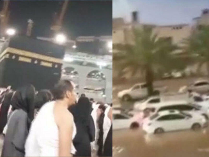 Məkkə və Mədinə sulara qərq oldu: Kəbəni şiddətli yağış altında ziyarət etdilər - FOTO - VİDEO