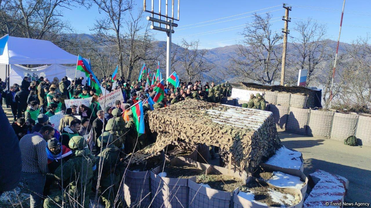 Azərbaycanın qeyri-hökumət təşkilatlarının (QHT) nümayəndələrinin Qarabağda Rusiya sülhməramlılarının müvəqqəti məsuliyyəti zonasında keçirilən etiraz aksiyası ikinci gündür ki, davam edir.