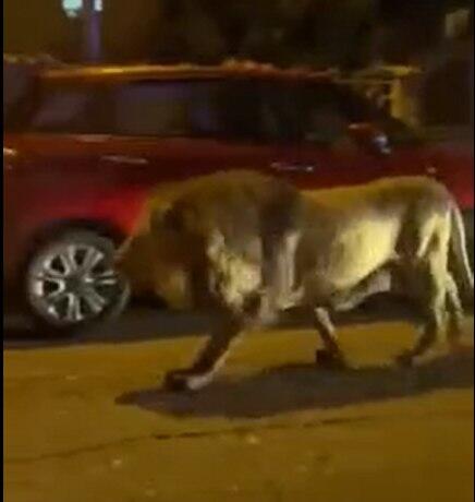 İtaliyanın Ladispoli şəhərində sirkdən qaçan şir küçəyə çıxaraq gəzməyə başlayıb.