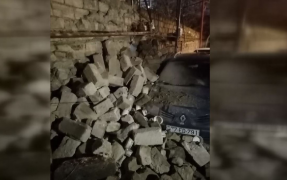 Paytaxtın Nərimanov rayonunda bir obyektin daş hasarı avtomobilin üzərinə aşıb.