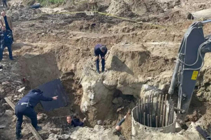 Torpaq altında iki işçi qalıb. Bir saat davam edən xilasetmə əməliyyatından sonra işçilərin meyitləri torpaq altından çıxarılıb.