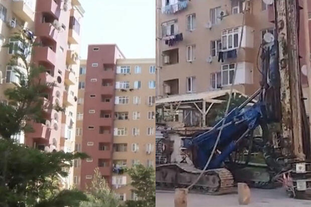 Day.Az xəbər verir ki, sakinlər İTV-yə bildiriblər ki, binanın bünövrəsi zəif olduğundan artıq əyilməyə başlayıb. Odur ki, ərazidə quyu qazılıb, bərkitmə işləri görülür.
