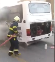 Hadisə nəticəsində avtobusun salon hissəsi qismən və arxa sol təkərləri yanıb. Avtobusun böyük hissəsi yanğından mühafizə olunub.