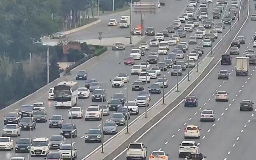 Bakının bir sıra yollarında nəqliyyatın hərəkətində sıxlıq yaranıb.