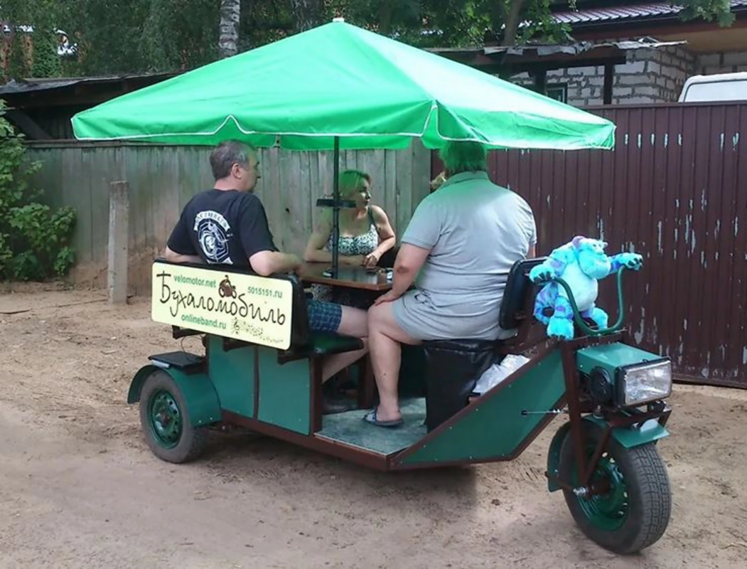 Rusiyanın Moskva vilayətinin Lyubertsı şəhərində ilk "araq içmək" elektromobili düzəldilib. Milli.Az bildirir ki, bu barədə Oxu.Az "Avito" saytına istinadla xəbər verir. Onu artıq 270 min rubla (təqribən 5 600 manat) satıblar. Gəzinti məqsədilə hazırlanan kustar elektromobildə 6-7 nəfər əyləşə bilər. Sürəti isə saatda 10-15 kilometrdir.