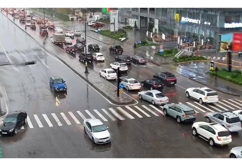 8. 8 Noyabr prospekti, Süleyman Əhmədov küçəsi ilə kəsişmədən mərkəz istiqamətində sıxlıq müşahidə olunur.