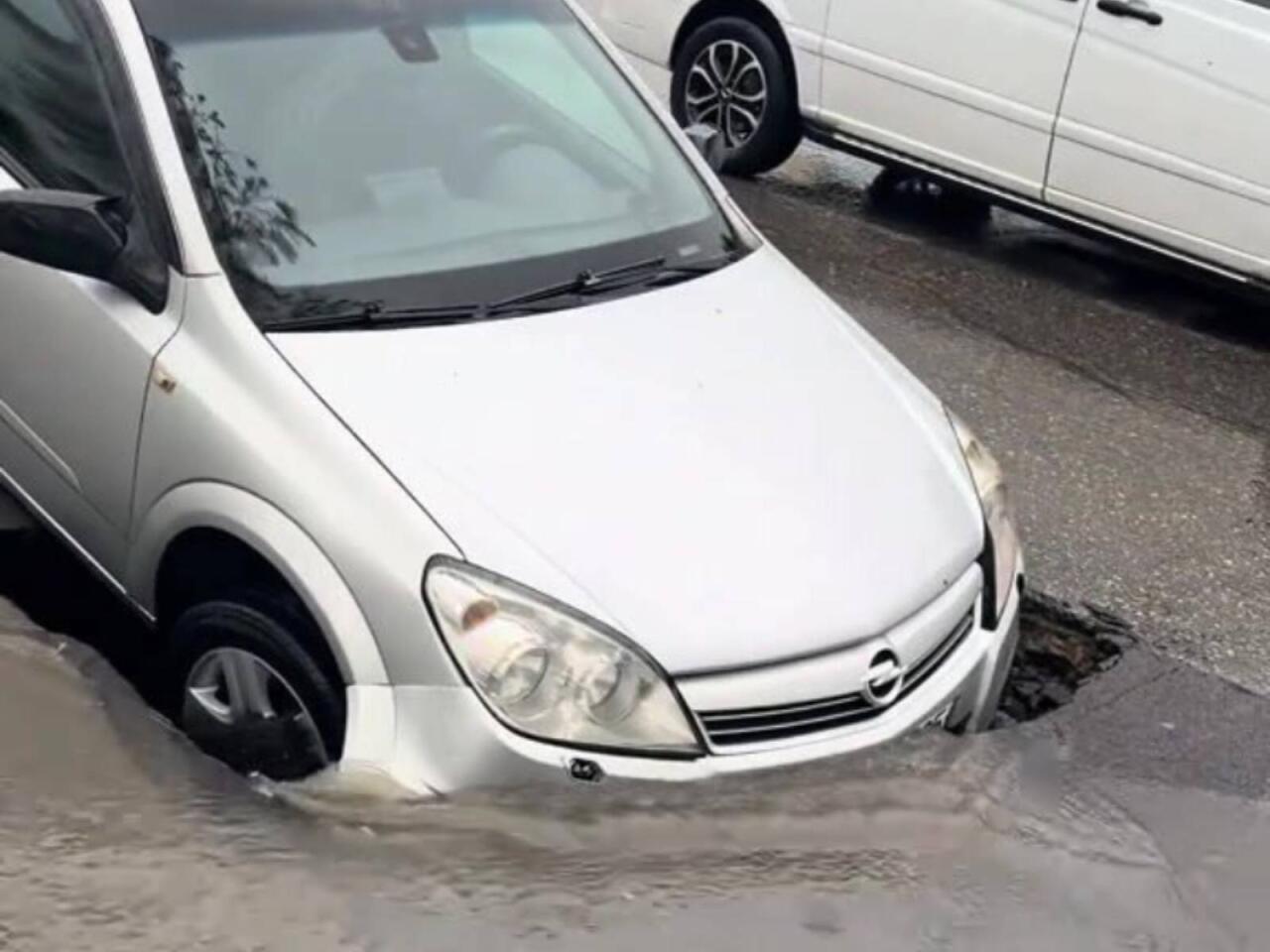 Bakıda yol çökdü, maşın çuxura düşdü - VİDEO