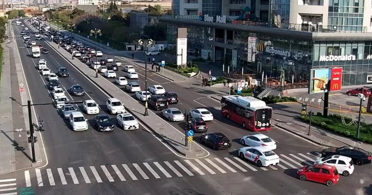 12. Atatürk prospekti, Ziya Bünyadov prospekti istiqamətində sıxlıq müşahidə olunur.