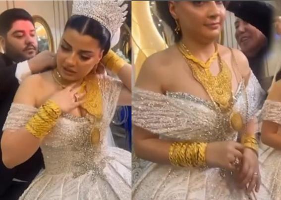 Tanınmış fenomen gəlinini qızıl içində “boğdu” - VİDEO