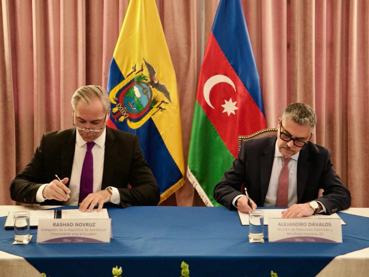 Sənədi Azərbaycan tərəfində səfir R.Novruz, Ekvador tərəfindən isə xarici işlər və insan mobilliyi naziri vəzifəsini icra edən Alexandro Davalos imzalayıblar.
