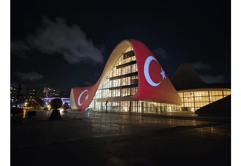 Heydər Əliyev Mərkəzi Türkiyə bayrağı ilə işıqlandırıldı