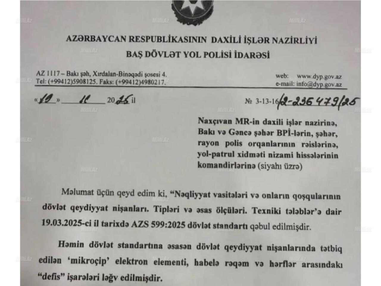 Xatırladaq ki, bir müddət əvvəl dövlət qeydiyyat nişanlarında yerləşən mikroçiplər də ləğv edilmişdi.