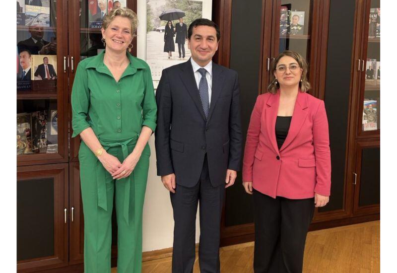 Bu gün Azərbaycan Prezidentinin köməkçisi - Prezident Administrasiyasının Xarici siyasət məsələləri şöbəsinin müdiri Hikmət Hacıyev Niderland Krallığının Azərbaycan Respublikasındakı səfiri Marian De Yonqla görüşüb.