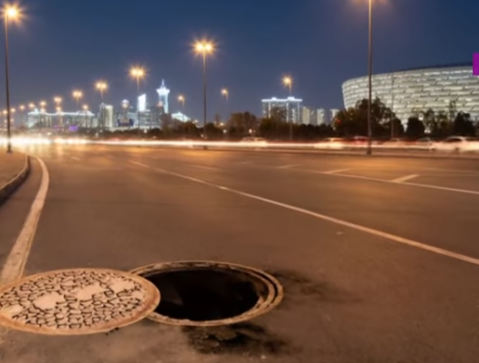 Bakıda bu yolda sürücülər kanalizasiya quyusuna düşürlər - VİDEO