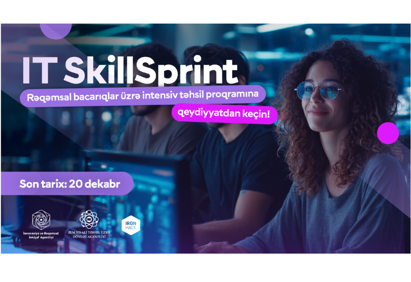 Ölkənin ali təhsil müəssisələrində rəqəmsal bacarıqlar üzrə beynəlxalq səviyyəli intensiv təhsil proqramı olan "IT SkillSprint"in qeydiyyatına start verilir. Layihə Rəqəmsal İnkişaf və Nəqliyyat Nazirliyi, Elm və Təhsil Nazirliyi, İnnovasiya və Rəqəmsal İnkişaf Agentliyi, Elm və Ali Təhsil üzrə Dövlət Agentliyi və "Ironhack" tədris şirkətinin tərəfdaşlığı ilə icra olunur.