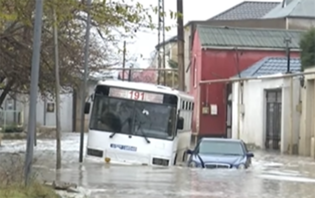 İntensiv yağan yağış nəticəsində Sabunçu rayon Yavər Əliyev küçəsini su basıb.