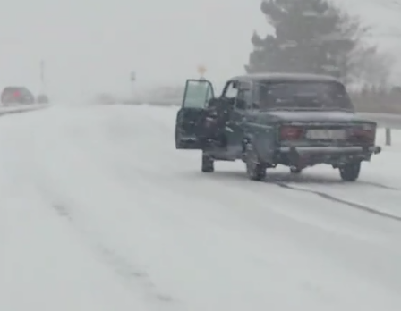 Buzlu yolda hərəkət edən sürücü anidən idarəetməni itirib. Sürüşən avtomobil qarşıdakı maşına dəyib.