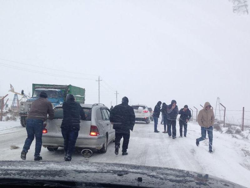 Qobustan rayonunun Təklə-Sündü-Xilmilli avtomobil yolunda güclü külək səbəbindən yolun hərəkət hissəsi qarla örtülüb və nəqliyyat vasitələrinin hərəkəti çətinləşib.