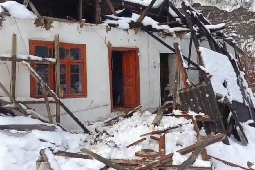 Lerikdə güclü qar nəticəsində evin dam örtüyü uçub.