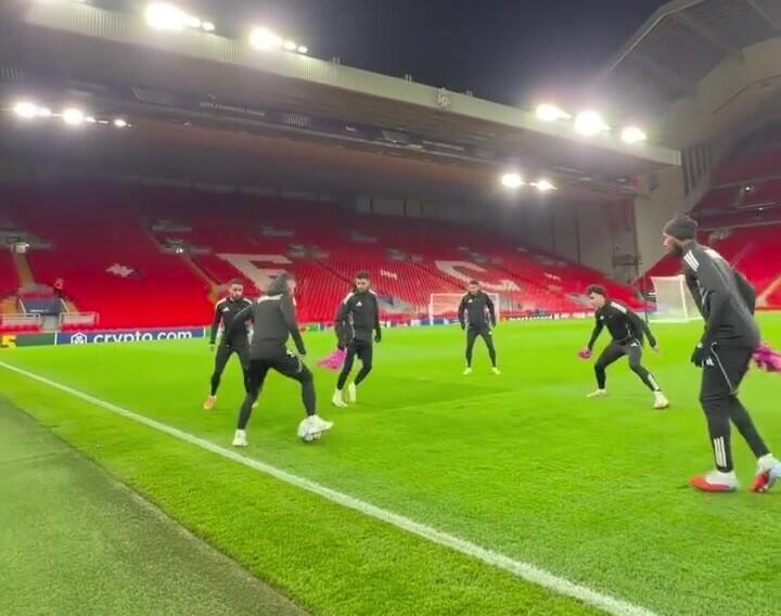 UEFA Çempionlar Liqasının Liqa mərhələsinin sonuncu - VIII turu çərçivəsində "Liverpul"la üz-üzə gələcək "Qarabağ" futbol komandası qarşılaşma ərəfəsində oyunöncəsi məşqini "Enfild" stadionunda keçirib.
