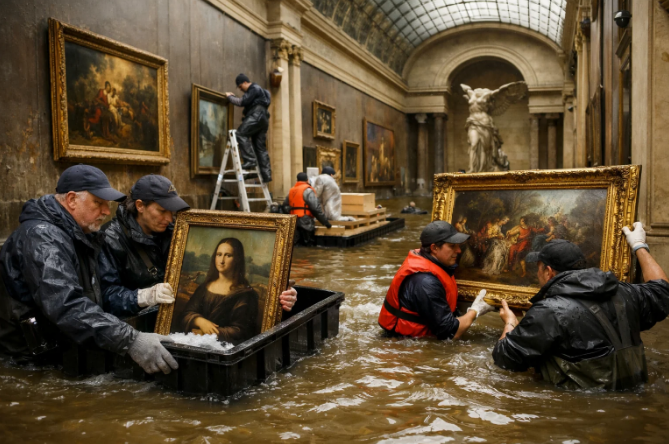 Fevralın 13-nə keçən gecə Parisin Luvr muzeyini su basıb.