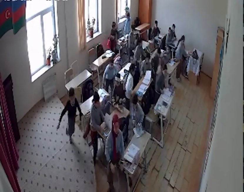 Day.Az xəbər verir ki, hadisə anı sinif otağının kameralarına düşüb.