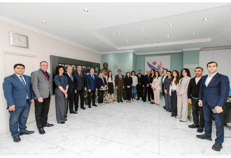 Leyla Əliyeva Mərkəzin kollektivi ilə həmsöhbət olub, onlarla şəkil çəkdirib.