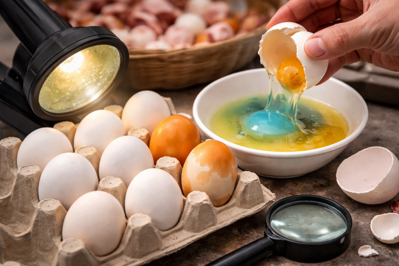 Mütəxəssislərin sözlərinə görə, orijinal yumurtanın özünəməxsus spesifik qoxusu olur. "Ovaskop" adlı cihazla yumurtanın içinə işıq salındıqda təbii yumurtanın daxili hissəsi şəffaf şəkildə görünür. Əgər yumurta çirklənmiş və ya saxta üsulla hazırlanmış olarsa, onun içində ləkələr və ya plastikə bənzər topalar müşahidə edilə bilər.