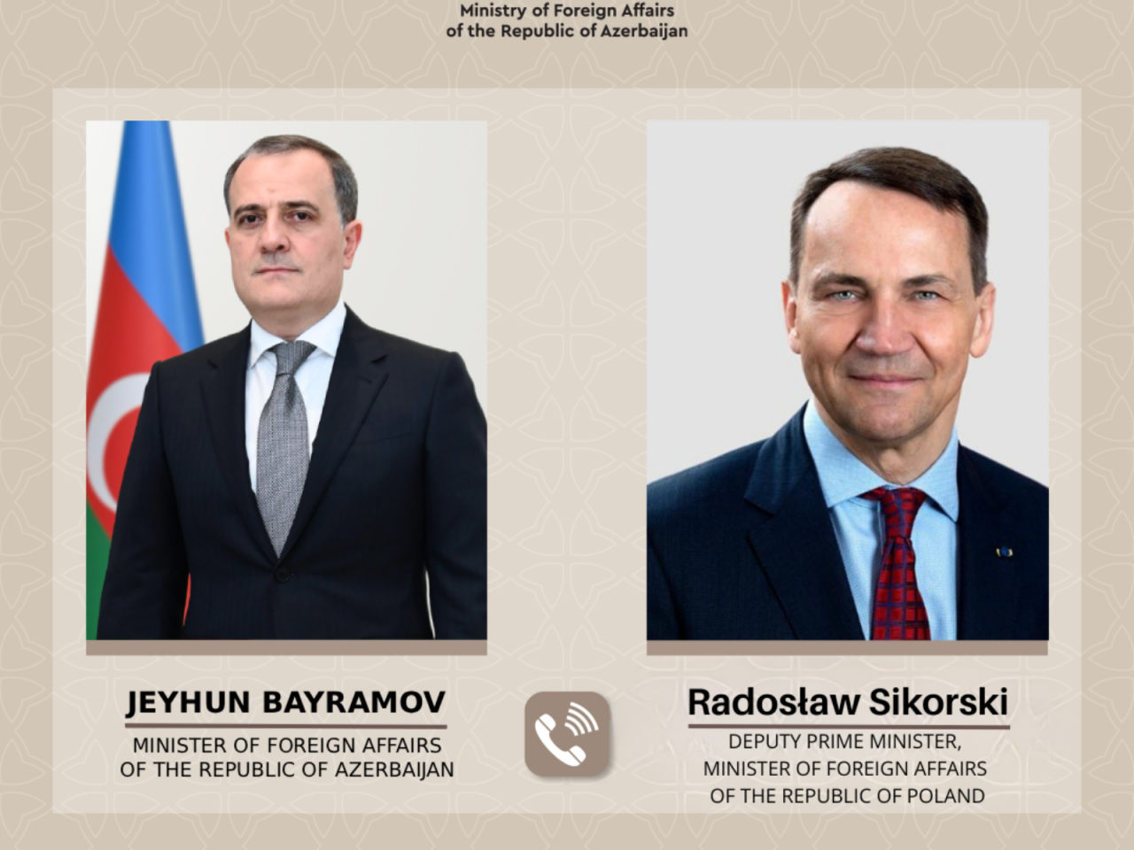Polşa Respublikasının xarici işlər naziri Radoslav Şikorski Azərbaycan Respublikasının xarici işlər naziri Ceyhun Bayramova zəng vurub.
